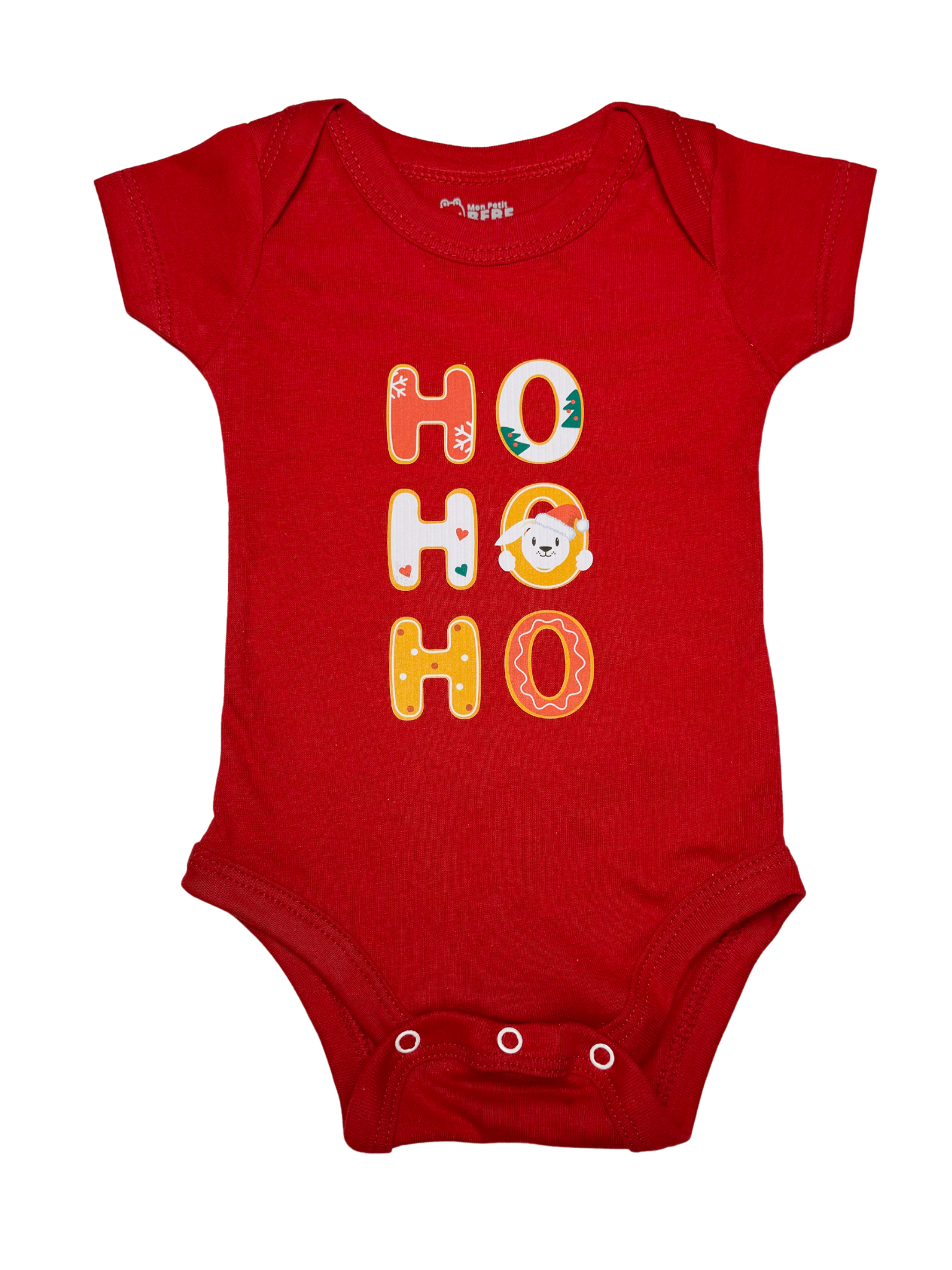 ¡Celebra la magia de la Navidad con este body rojo lleno de espíritu festivo! Con un estampado alegre de «Ho Ho Ho» y detalles navideños adorables, este diseño es perfecto para los momentos más especiales de la temporada.